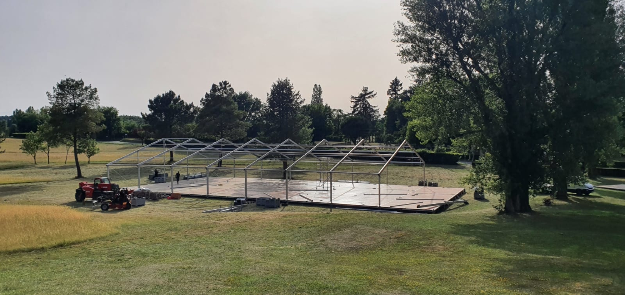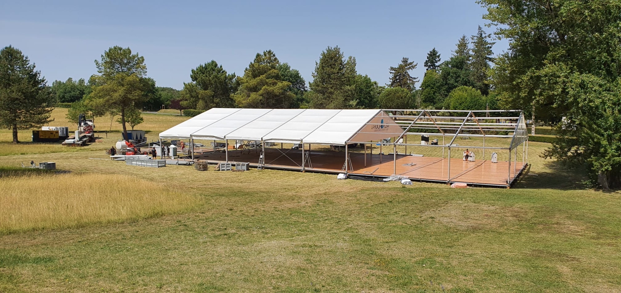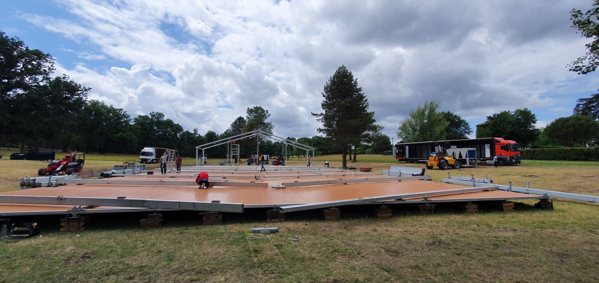 Du montage des structures et des tentes à l’installation des scènes et du mobilier, chaque élément a été soigneusement conçu pour répondre aux besoins de l’événement.