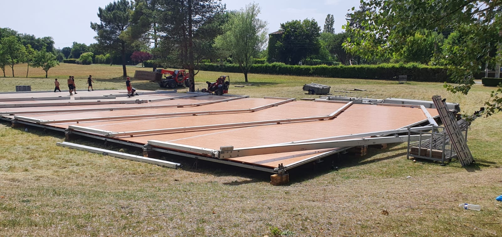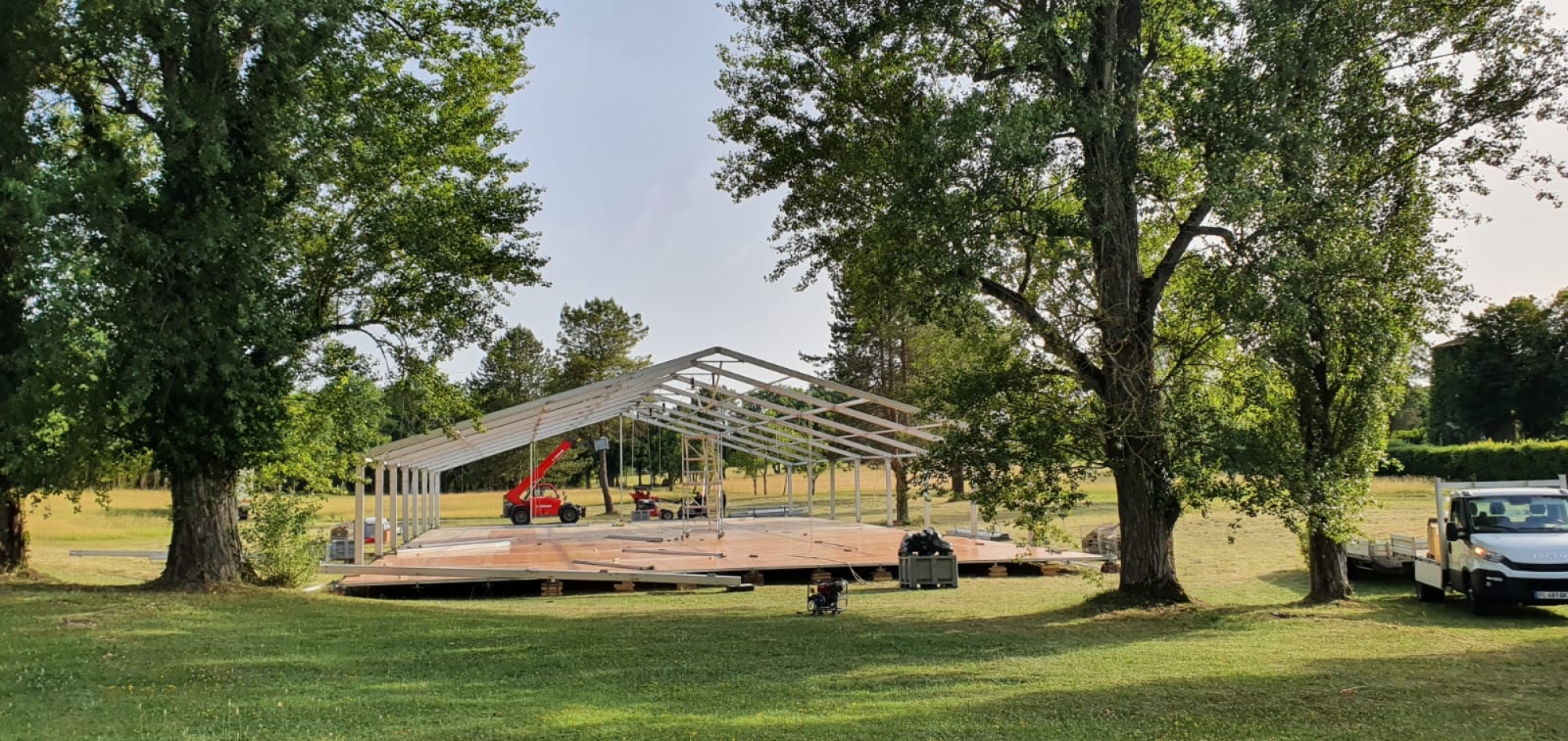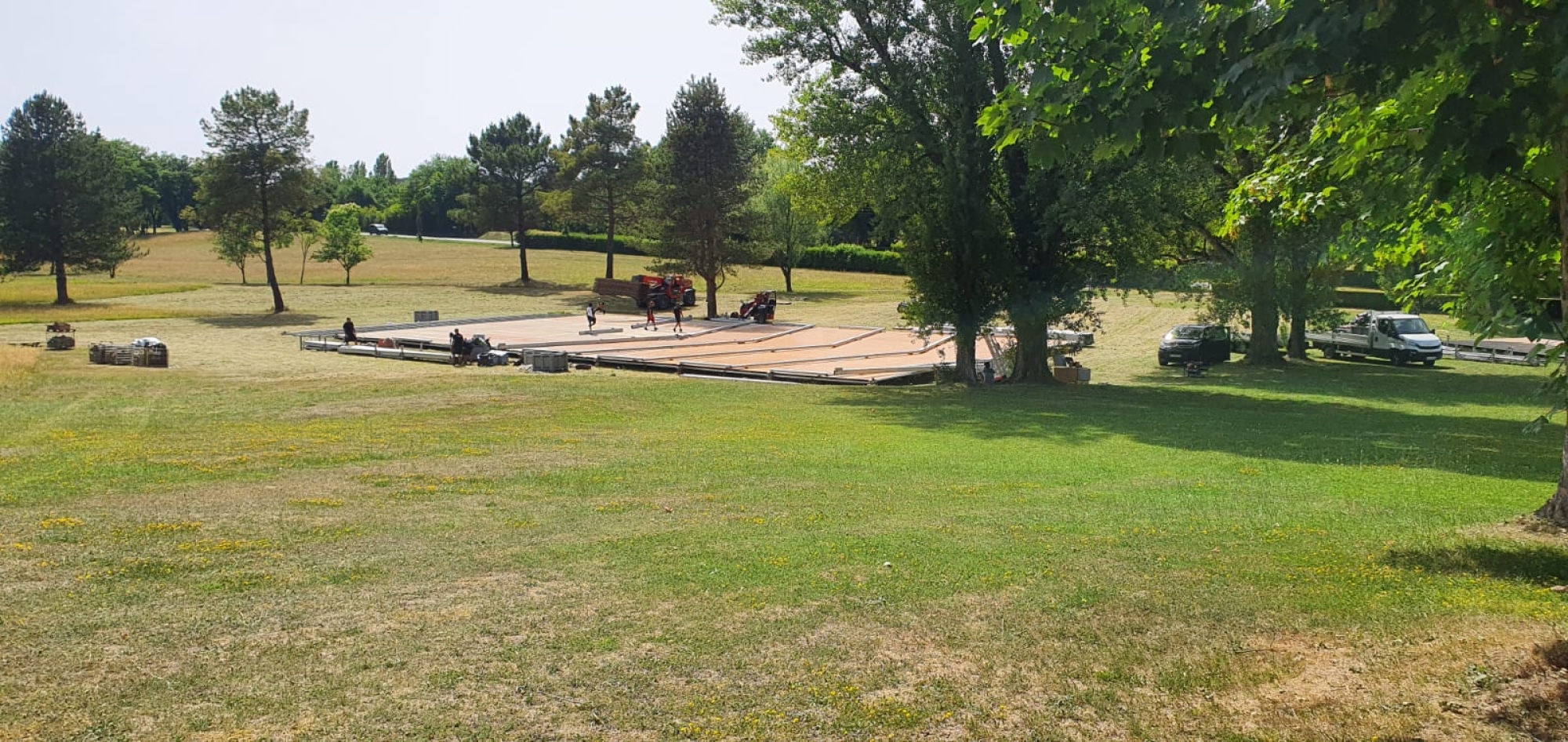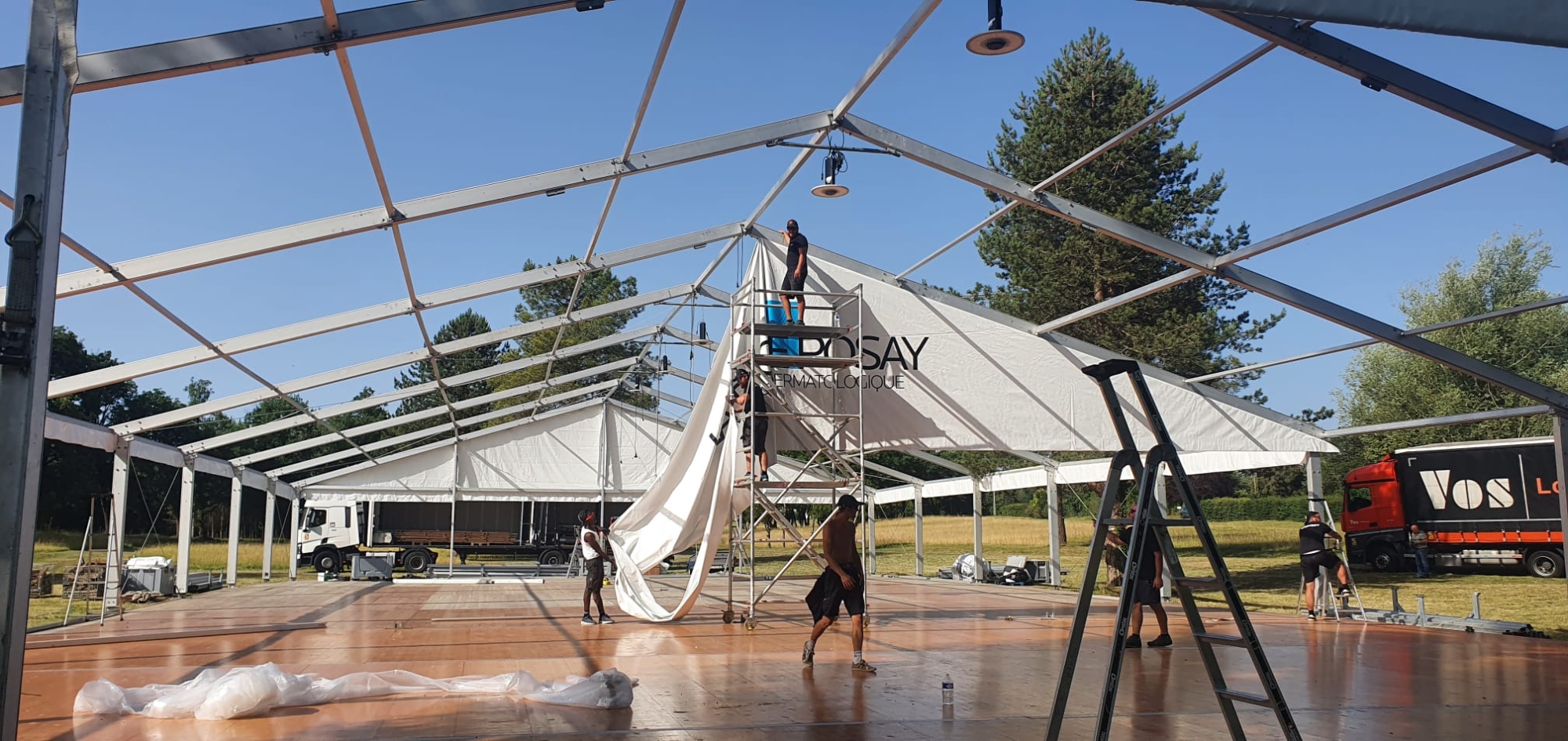Du montage des structures et des tentes à l’installation des scènes et du mobilier, chaque élément a été soigneusement conçu pour répondre aux besoins de l’événement.